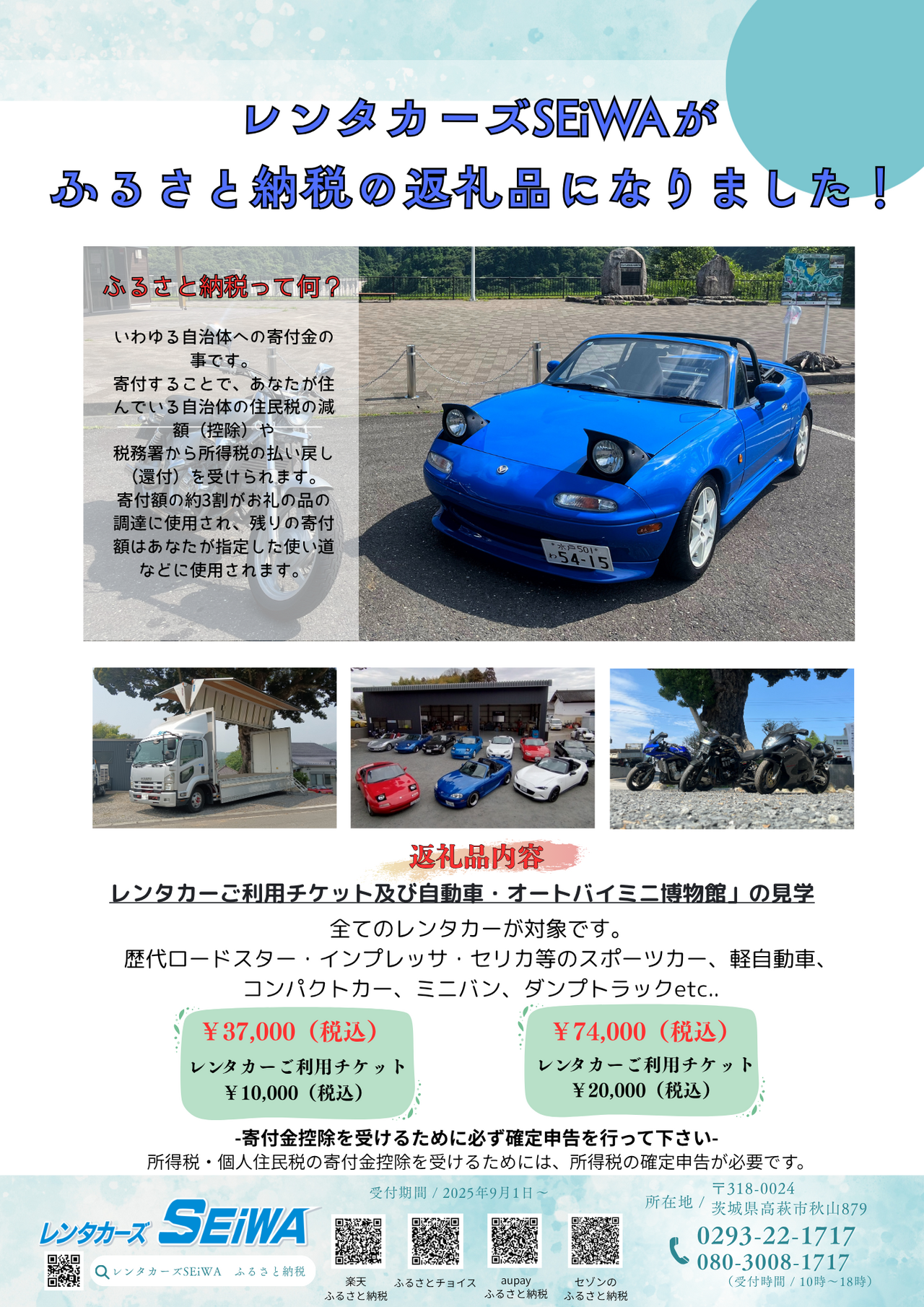 返礼品の内容としましては、レンタカーにご利用出来る10,000円分と20,000円分の利用券となります。